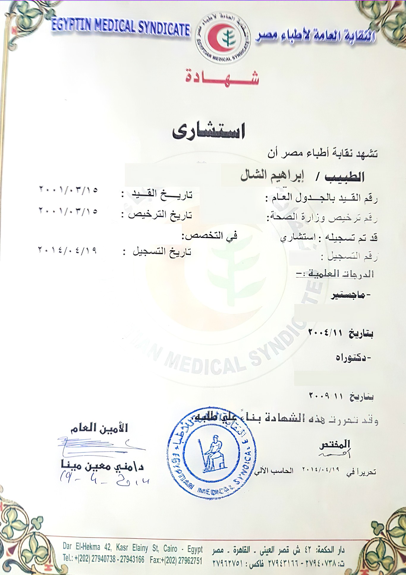 تواصل معنا و إحجز كشف مع د/ إبراهيم الشال